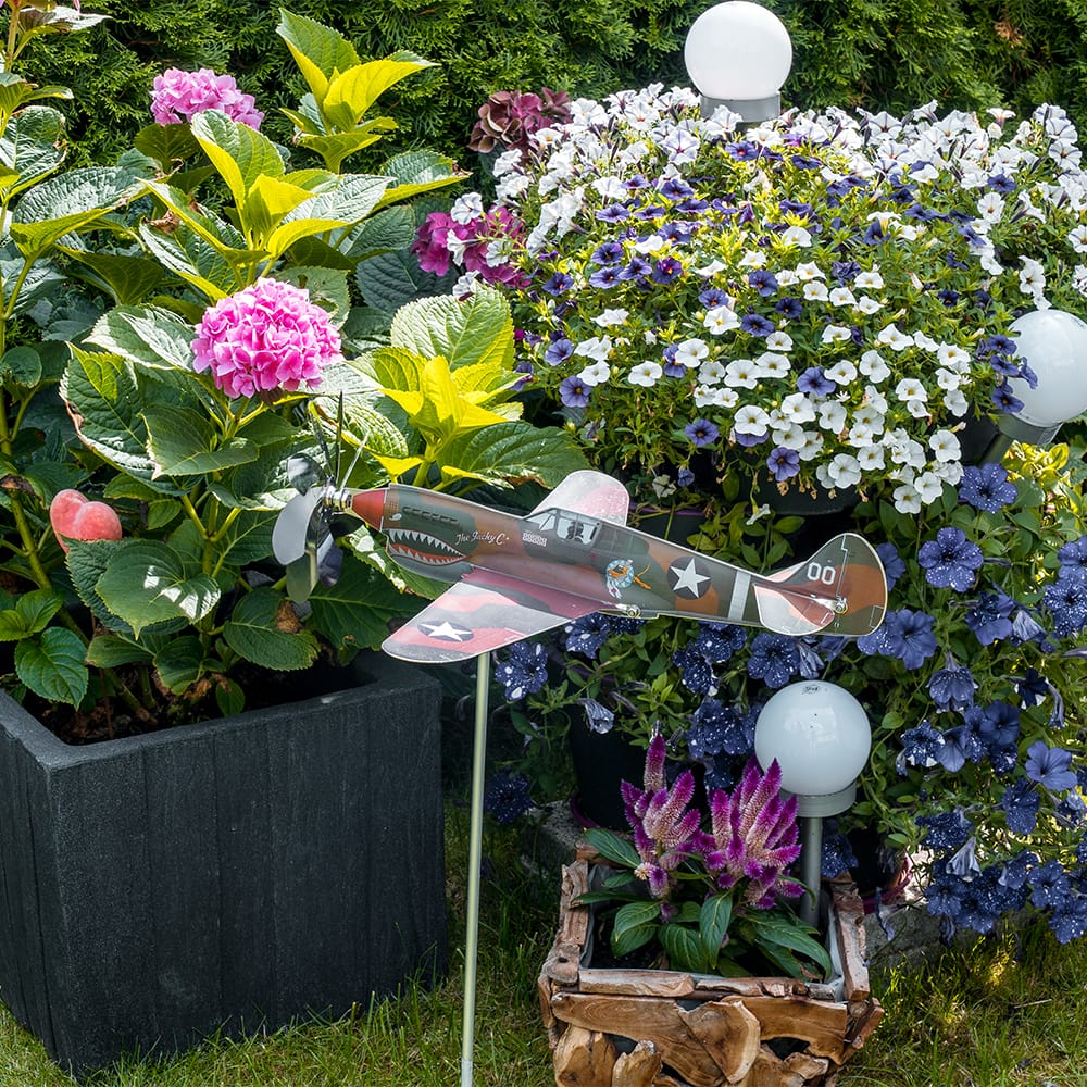 maxFlite chose the colouring of the well-known “Jacky C II” with her wide-open shark mouth full of razor-sharp teeth. You can admire the original in the American Airpower Museum in New York. Make the attractive P-40 part of your personal maxFlite “Gardenfighter” collection today!