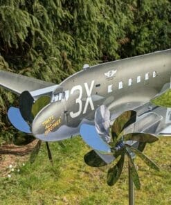 Als Unternehmen, das seit vielen Jahren im Bereich Gartendekoration tätig ist, verstehen wir die Bedürfnisse und Wünsche unserer Kunden. Wir bieten die C-47 “That’s All Brother” als Windspiel in einer Ausführung an, die das Flugzeug in seiner Originalbemalung zeigt.