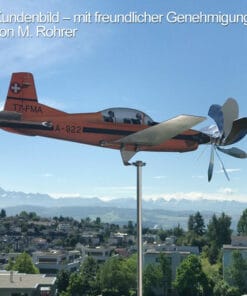 mit grossem Vergnügen darf ich für das FFA Museum in Altenrhein/Schweiz (www.ffa-museum.ch) die PC-7 fliegen, und habe vor kurzem von einem Fluggast als Geschenk eine eurer PC-7 erhalten. Ein wunderschönes Modell, sehr wertig und stabil fabriziert, und traumhaft bedruckt. Mein Gast hat es für mich noch „getunt“ und die Registration unseres PC-7 darauf geklebt…ein top Hingucker auf unserer Terrasse. Herzlichen Dank für eure sehr schöne Arbeit!