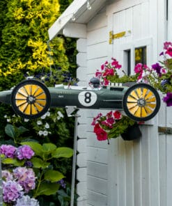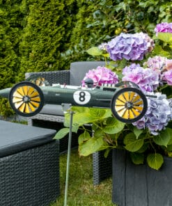 Machen auch Sie den eigenen Garten oder Balkon zur Rennstrecke für Ihren legendären Lotus 25 als dekoratives Windrad. Staunen Sie über die mit Drehzahl der gelben Felgen und sagenhaften Fahrmanöver wenn das Windradauto der rasanten 1960er Jahre in Ihrem Garten dem Wind entgegenfährt.