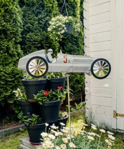 Die freistehenden Räder dieser frühen Rennwagen bieten sich ideal an um vom Wind angetrieben zu werden. In der üblichen Weise verbindet maxFlite die bewährten rostfreien Edelstahlbleche mit hochwertigen Aufklebern um alle Details des Originalflitzers auf das Windradmodell zu übertragen. 5-fach kugelgelagert können Sie hier ein Windrad höchster Güte zur Dekoration Ihres Gartens kaufen.